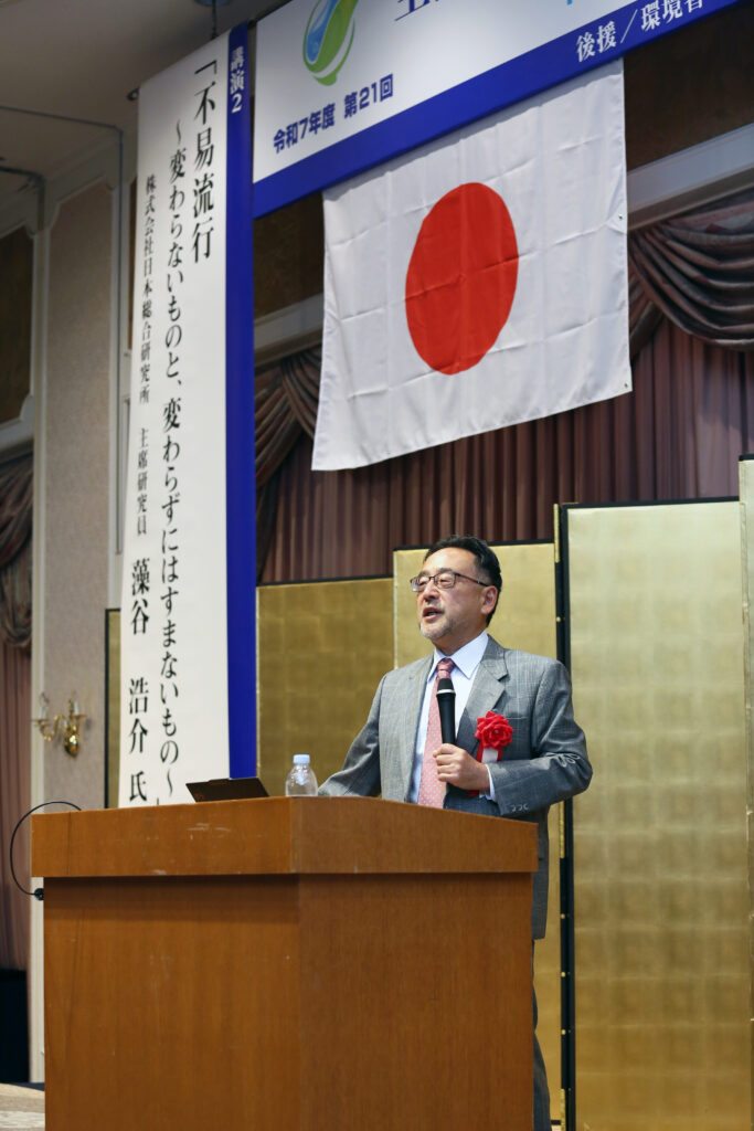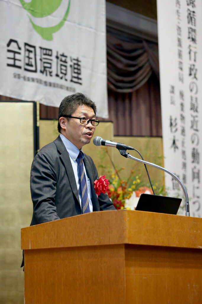 講演会では、まず、環境省 環境再生・資源循環局 廃棄物適正処理推進課 課長 杉本留三氏に「廃棄物・資源循環行政の最近の動向について」と題し、国の政策動向や制度改正の方向性、現場に求められる視点などをわかりやすく解説いただきました。